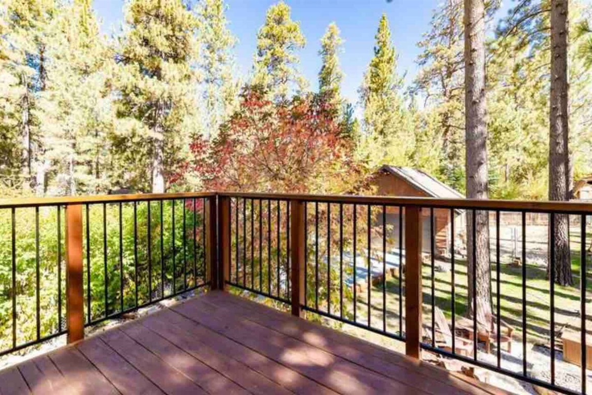 -1 porch & 1 deck. The upstairs deck can be accessed through upstairs bedroom. Enjoy the beautiful view of Big Bear from your bed-wake up to the sun shining through your doors or windows, start the day right! You can also access the backyard from the master bedroom downstairs.
