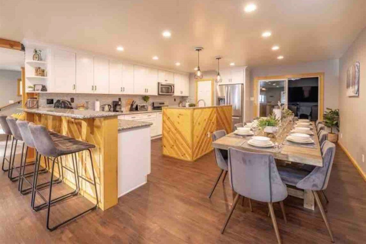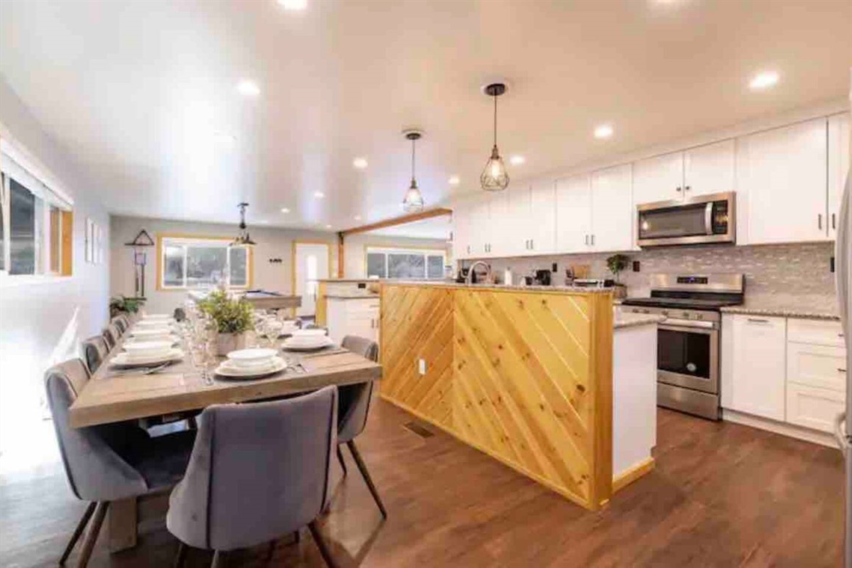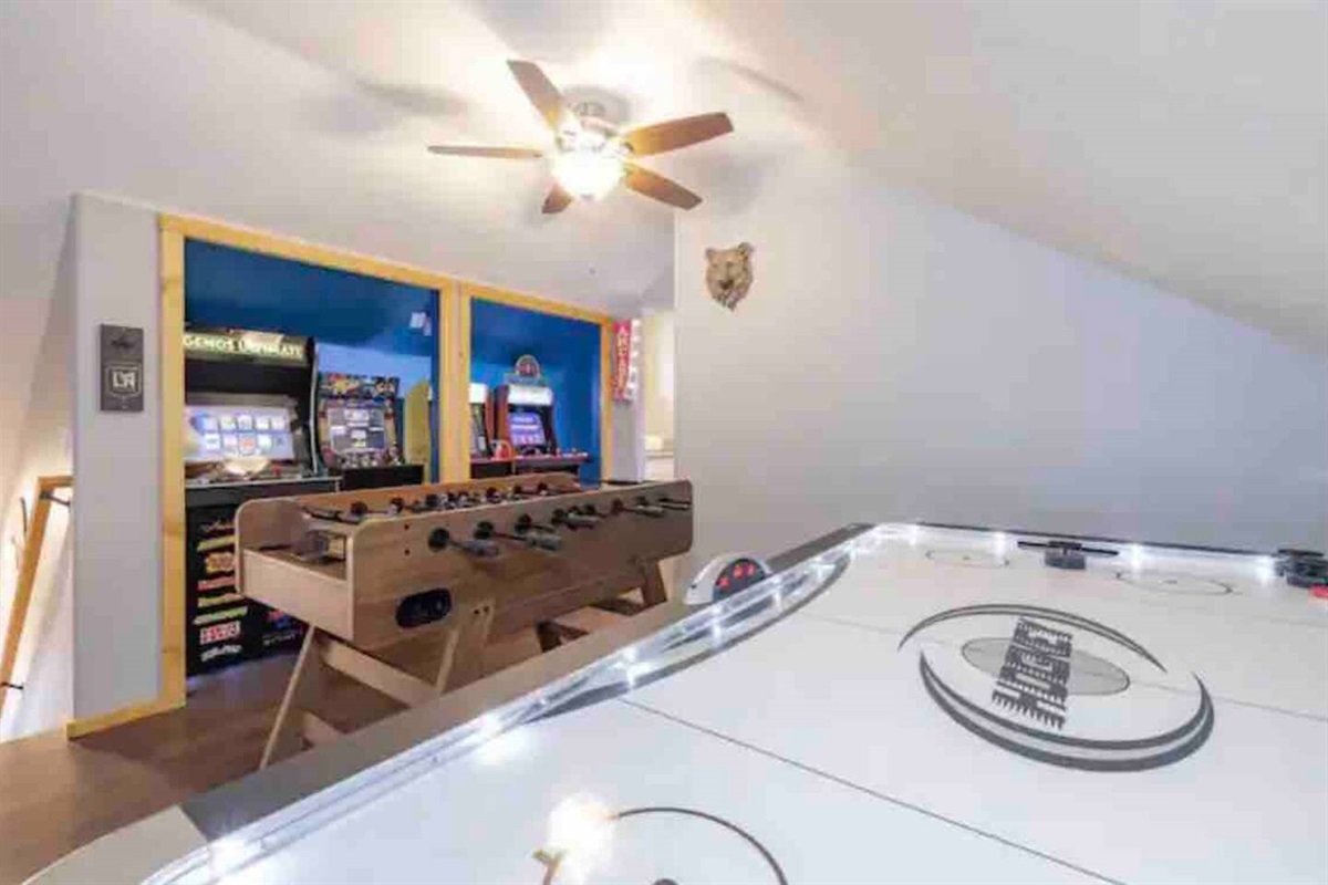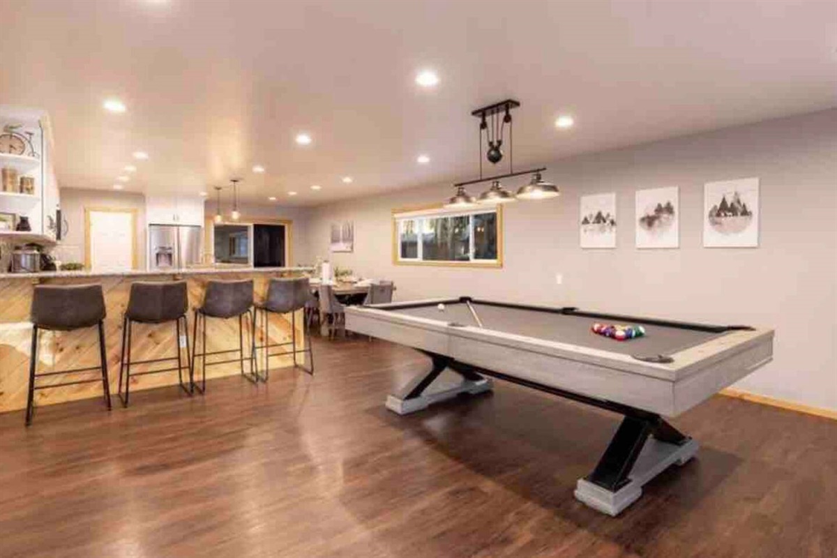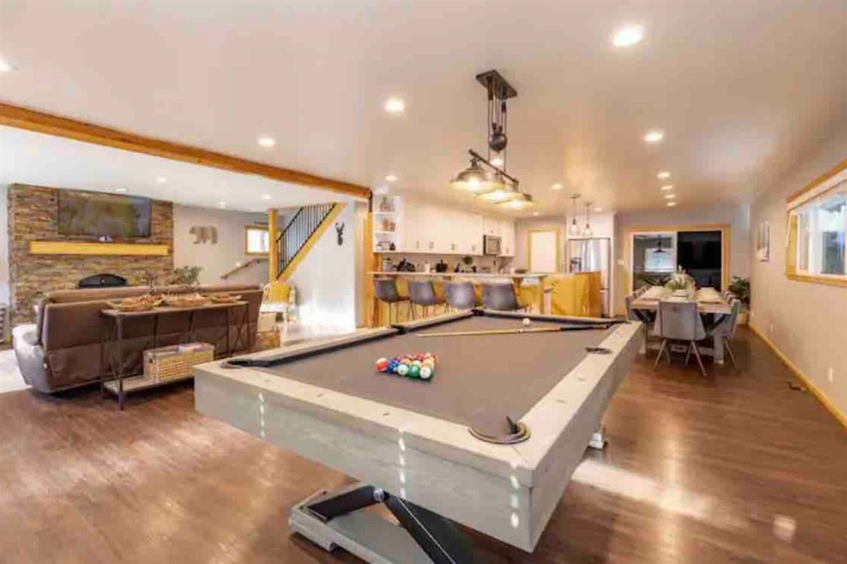 5 Bedrooms • 3 Bathrooms 3 Baths • Sleeps 11-15High-end, tastefully designed home w/ amazing entertainments to choose from. Start w/ a cup of coffee in the large yard by the firepit or on the deck/patio breathing in the fresh mnt. air, then challenge your friends/family to a game of pool, foosball, air hockey or any of the arcade games. Take a stroll to TheVillage & The AlpineSlides-only a 5mins drive! Come back to the GrandGetaway & unwind in the hottub, gazing at the stars. End your night watching your fav movie in our private theater!