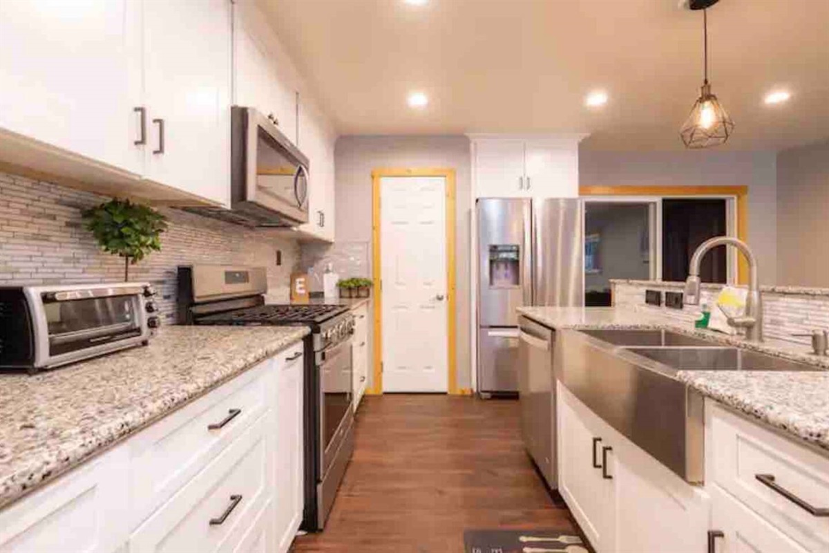 -Amenities: toaster, Keurig coffee machine, fridge, gas stove & oven, microwave, dishwasher, air fryer, blender, regular coffee maker, and hot water kettle.